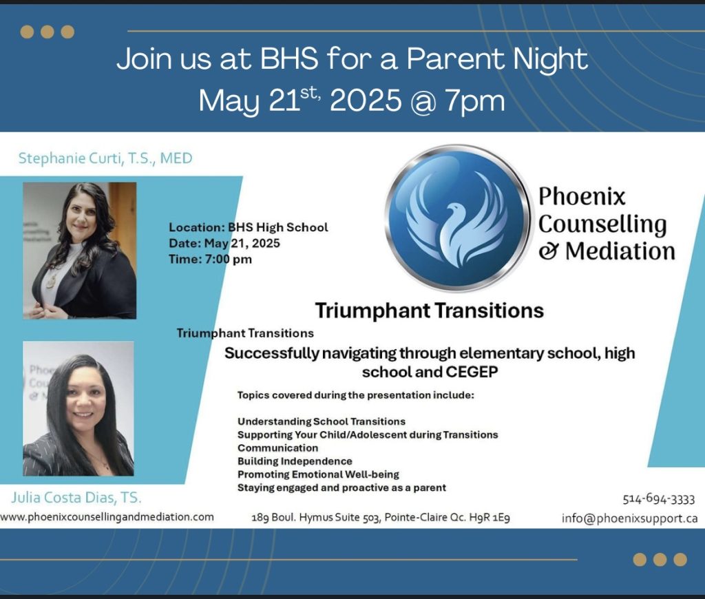 We are thrilled to offer this insightful event, led by one of our own BHS parents!